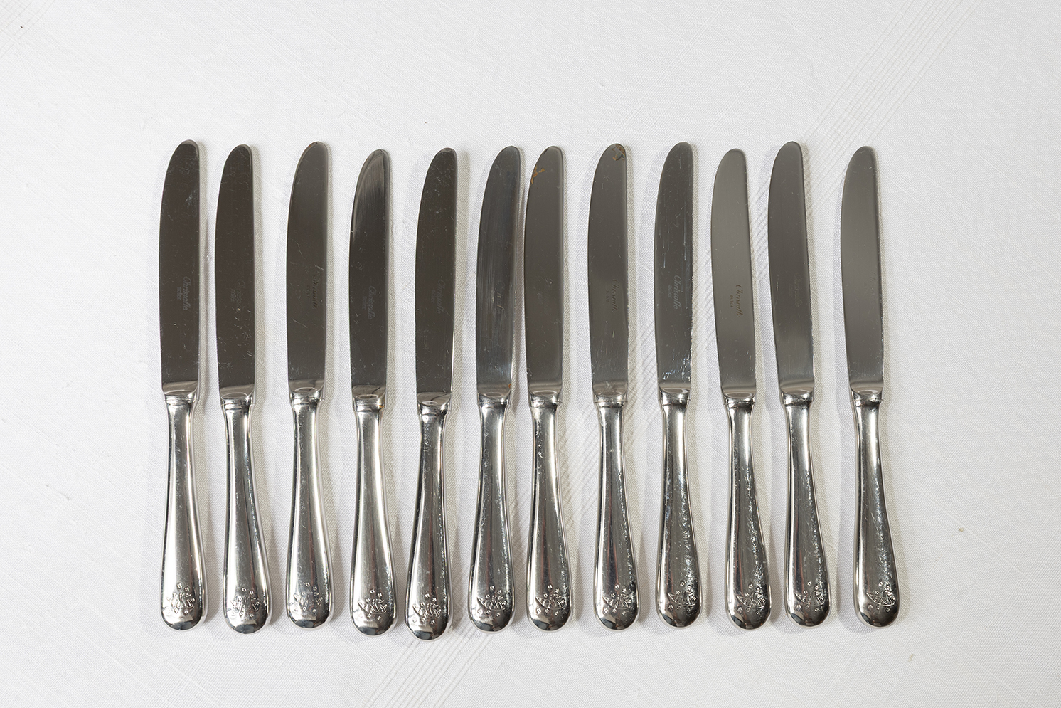 Lot de 12 couteaux de table – Christofle acier, France XXe siècle
