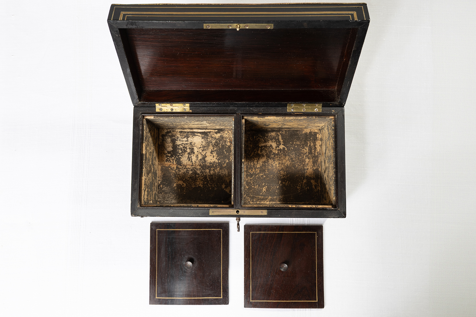 À l’intérieur, deux compartiments permettaient autrefois de conserver différents thés, faisant de cet objet autant une pièce utilitaire qu’un symbole de raffinement.
